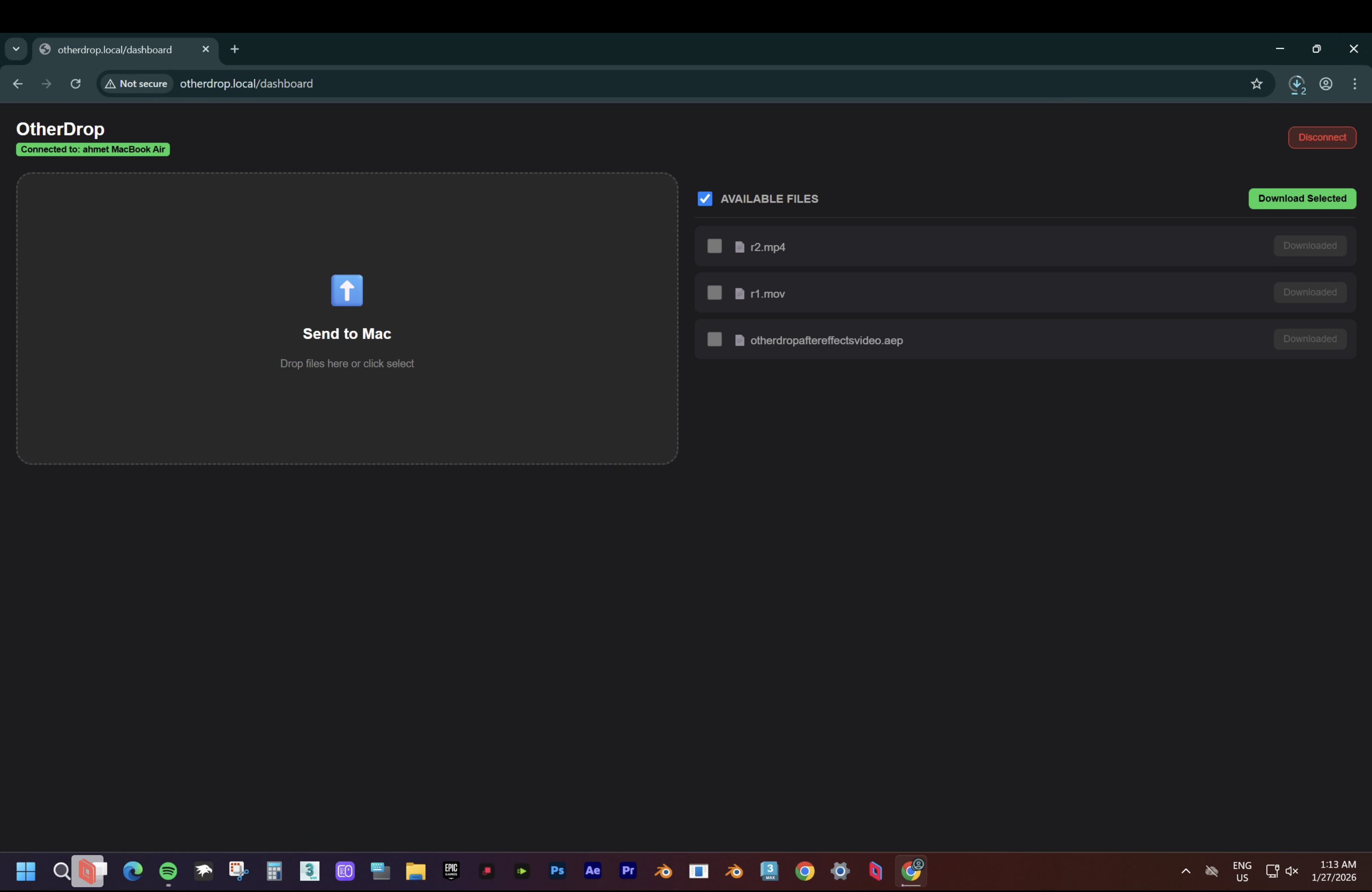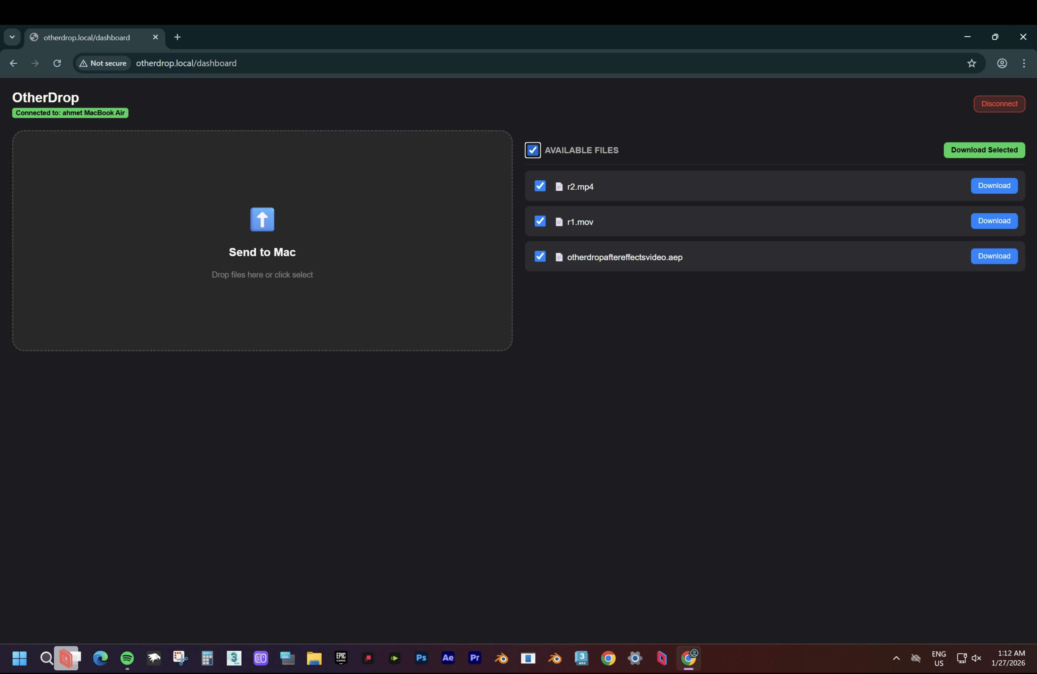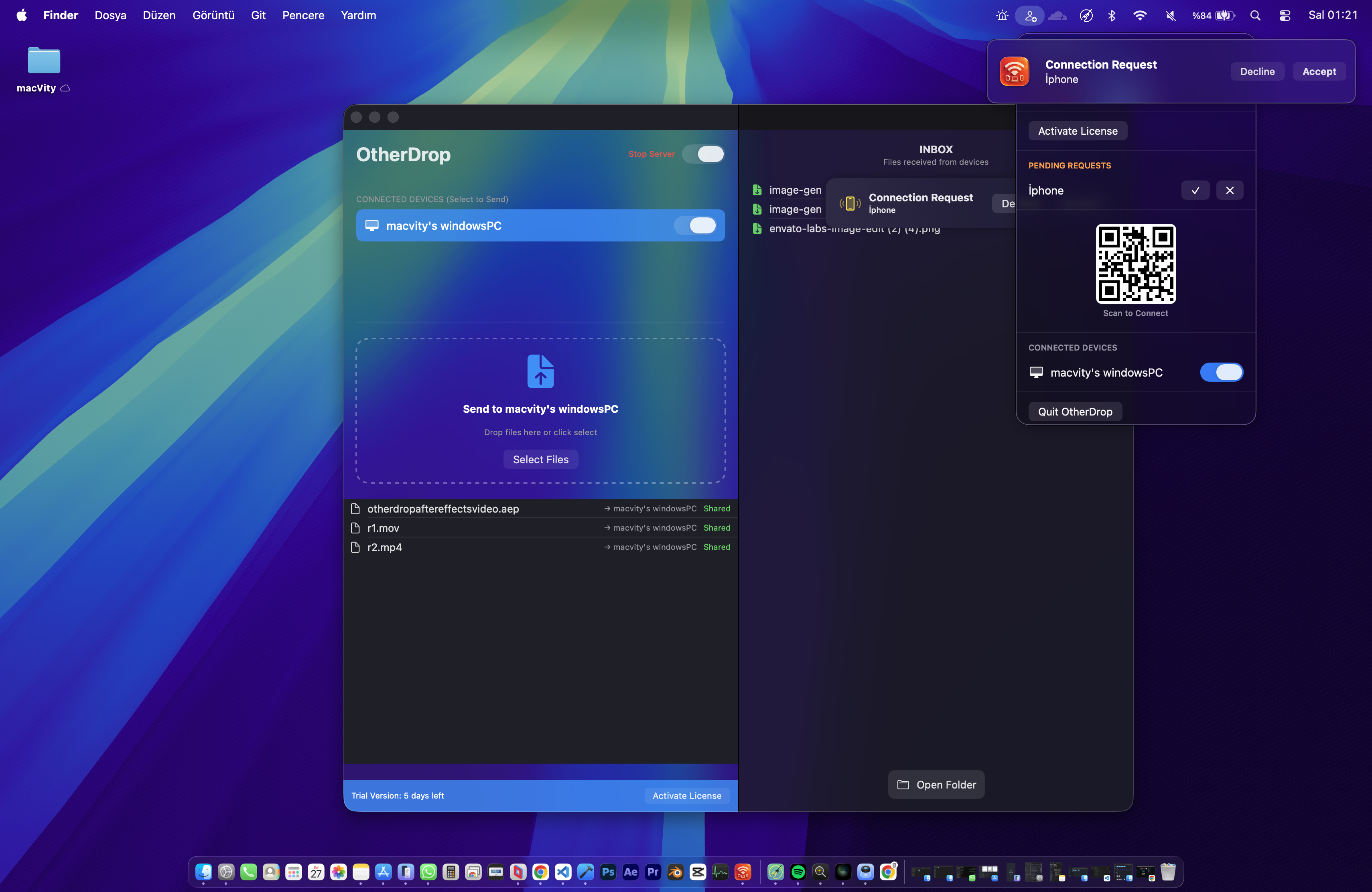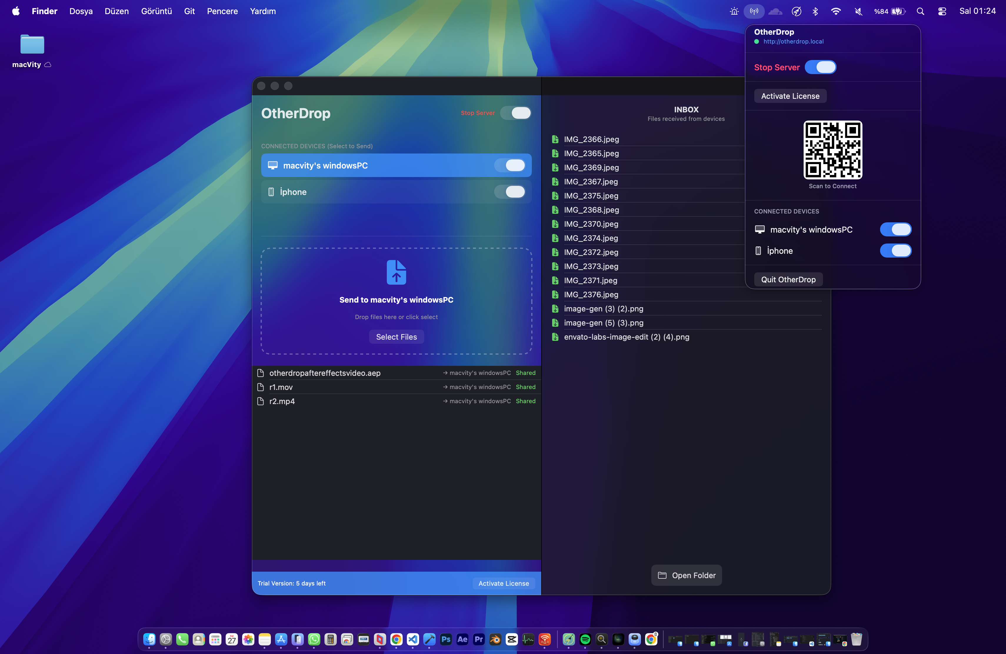A Bridge of Freedom Between Your Mac and Any Device Sending files from your Mac to Android, Windows, or another iPhone has never been easier. No app is needed on the receiving device! As long as you're on the same network, open the camera and scan the QR code or enter otherdrop.local in your browser.